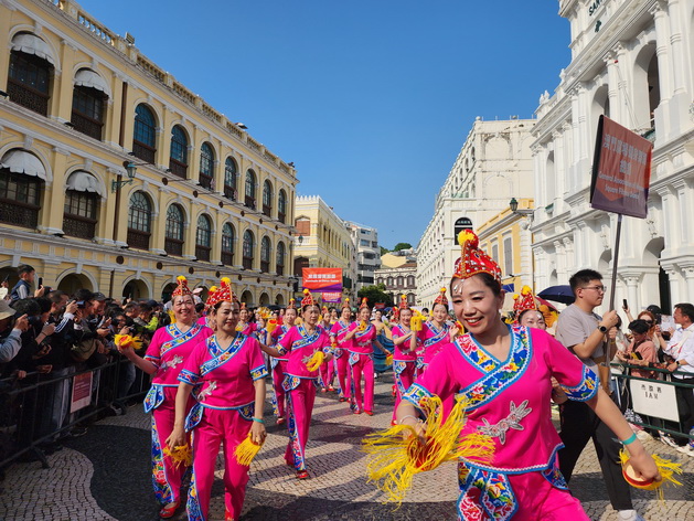 【本報消息】由文化局聯同六大綜合旅遊休閒企業合辦的慶祝澳門回歸祖國26周年「2025澳門國際幻彩大巡遊」周日下午在大三巴牌坊起步,由大約1,800名參演人員組成的隊伍秉承宣揚「愛‧和平‧文化共融」的理念巡遊到西灣湖廣場;傍晚隨即舉行2025年「東亞文化之都‧中國澳門」活動年開幕儀式,以文化共融的匯演形式為活動年揭開序幕。