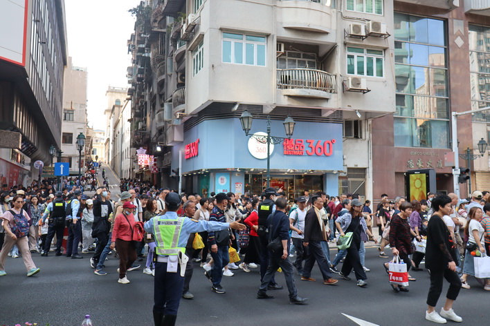 隊伍途經的街道設有人流管制措施,部份主要交通道路在隊伍經過的間隔時間開放行人過馬路及車輛通行,其中警方在新馬路與南灣大馬路交界處更設置大喇叭方便指揮現場交通,現場人流雖多但秩序良好,而不少駕駛者事前已得悉當日有大巡遊而盡量避免駛入相關道路,因此現場交通未算擠塞。