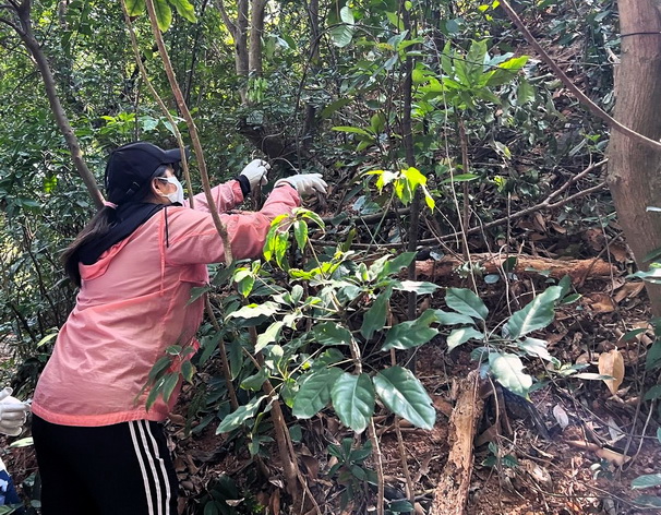 松山市政公園為褐根病高發區,且近年受風災影響,導致林區調節及自我修復失衡,外來入侵藤本植物瘋長,大面積覆蓋使原有樹木無法獲得足夠陽光進行光合作用;林下樹木幼苗也無法正常成長,最終令林區持續衰退無法自然更新,逐漸喪失生態功能。為維護松山林區健康,市政署已於三月起在松山市政公園分區分階段進行清藤護林工作。