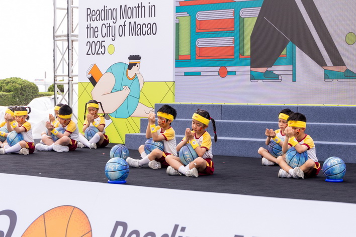 共讀月系列活動今年以「閱讀×運動」為主題,啟動儀式上分別由氹仔坊眾學校及高美士中葡中學的學生表演「書中自有籃球夢」,以籃球操及花式跳繩與主題相契合的體育表演為系列活動揭開帷幕。