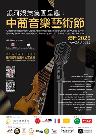【本報消息】由銀娛冠名贊助、旅遊局及文化局支持,澳門中葡文化交流友好協會與澳門音樂藝術空間合辦的銀河娛樂集團呈獻:「中葡音樂藝術節—澳門2025」將於5月30日至6月1日在澳門銀河國際會議中心等地舉行。