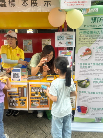 在活動期間,工作人員以遊戲的方式與居民積極互動,加強其對採取正確防蚊措施的認知;為使之更直觀地明白清除積水對預防登革熱的重要性和成效,「社區預防登革熱宣傳推廣站」還展示了蚊幼蟲(孑孓)標本,讓其了解白紋伊蚊的生長過程及生活習性。白紋伊蚊主要在細小、清潔、靜止的積水孳生,故必須注意保持環境衛生,清除工作地點和家居周圍環境的積水,杜絕蚊蟲孳生。在家中可使用紗窗、蚊帳或開冷氣等措施,減少被蚊叮咬機會;在戶外活動時,可穿着淺色長袖衫褲,於皮膚外露處或衣服上塗上含避蚊胺成份的驅蚊劑(包括DEET、IR3535和Icaridin);若有發熱、出疹等疑似登革熱症狀,應及時就醫,並告知醫生有關的居住地點或旅遊史。
