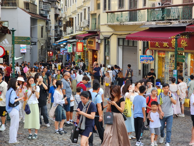 【本報消息】內地為期五天的五一黃金周假期周一結束,連日來本澳雖然間中有雨,但以多雲並伴隨陽光為主的天氣下,不單無礙本澳居民利用假期出遊,也無阻旅客來澳旅遊的熱情;根據政府公佈的出入境數據,首四日假期本澳錄得總出入境約311.7萬人次,同比上升28%,當中抵澳旅客逾75.7萬人次,同比上升42%,假期第二日和第三日抵澳旅客更一連兩日超過20萬,連日來本澳各區都人頭湧湧。