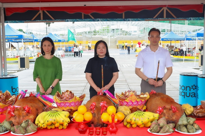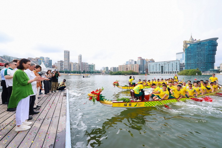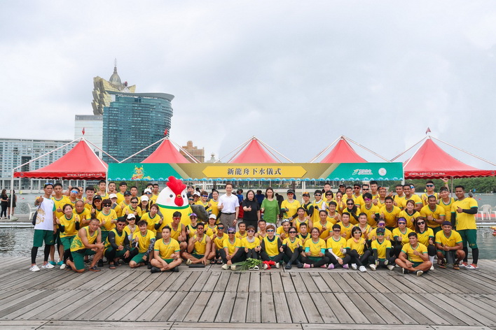 澳娛綜合日前假南灣湖水上活動中心舉行「新龍舟下水儀式」及「澳娛綜合龍舟隊伍下水禮」,為新龍舟及即將參賽的龍舟隊祈求平安順利,並祝願旗開得勝。體育局代副局長李詩靈、澳娛綜合常務董事何超鳳及澳門龍舟總會理事長黃家豪等嘉賓同場出席,為14艘新龍舟主持寓意吉祥平安的祈福儀式。期後澳娛綜合董事及管理層亦為即將參賽的龍舟隊伍祈福及打氣,祈求比賽順利、風調雨順。