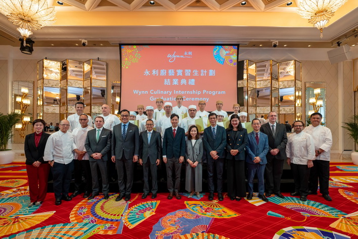 【本報消息】在教育及青年發展局的倡議下,永利與中葡職業技術學校開展「校企合作」,自 2021年起推行「永利廚藝實習生計劃」,助力為澳門培育餐飲業人才,為本地青年提供多元職業選擇。該計劃自開辦以來迄今已成功培育近40名中葡職業技術學校廚藝專科學生,持續為澳門餐飲業發展儲備人才。日前,第四屆「永利廚藝實習生計劃」畢業典禮於永利皇宮圓滿舉行,參與計劃的學員順利完成為期一學年的實習培訓後,在多名嘉賓及家長們的見證下獲頒畢業證書,成為具備專業素質的廚藝新力軍。