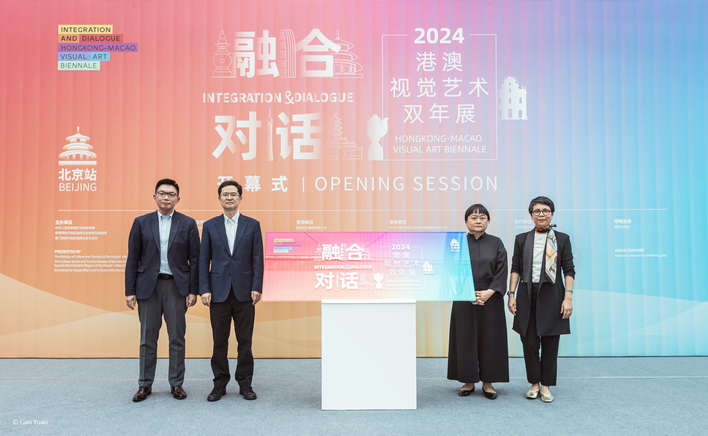 「2024港澳視覺藝術雙年展」北京站開幕式於6月17日在北京國家大劇院藝術館舉行,文化局代副局長何鴻斌連同八位本澳參展藝術家一行出席開幕式。文旅遊部國際交流與合作局(港澳台辦公室)副局長孔倫致辭時表示,本屆雙年展自去年10月啟幕,走進了杭州和南京,港澳藝術家與內地藝術家同台亮相,生動展現當代藝術創作的生機和活力。今天,藝術交流的接力棒傳遞到北京,這座歷史名城將為藝術創作提供廣闊舞台。期待港澳與內地藝術家攜手,弘揚中華文化,提升國際影響力。