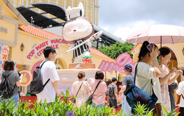 【本報消息】旅遊局與POP MART合辦大型文旅項目「與POP MART漫遊澳門」由即日起至今年9月21日期間舉行,超人氣角色Baby Molly、CRYBABY、DIMOO及LABUBU的裝置登陸瘋堂斜巷、白鴿巢前地、崗頂前地和氹仔排角路休憩區。初步數據顯示,活動第一階段(6月6日至8日)共吸引約15.3萬人次到訪設於四個社區的裝置及活動大本營所在區域,活動的消費抽獎達62萬次。