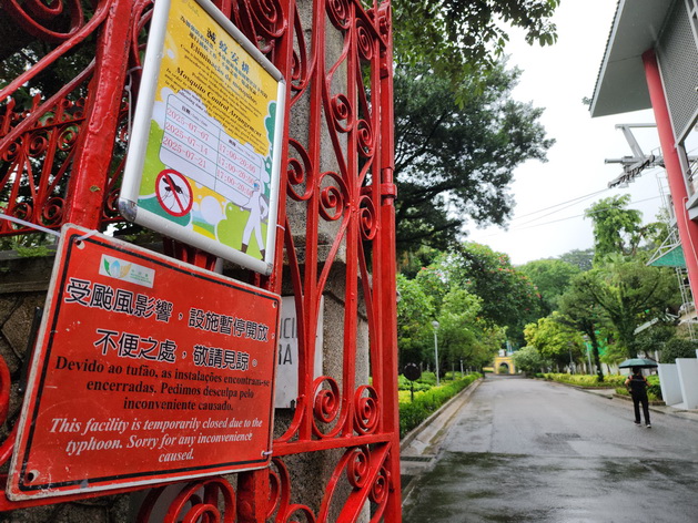 颱風期間,不少街道樹木和廣告橫幅被強風吹毀,部份樹幹和樹枝被暫時堆放在馬路或行人道一旁等待清理,而部份掛在燈柱上的廣告橫幅同樣等待處理。市政署早上近九時公佈全澳公園、步行徑、單車徑等綠化及休憩設施在颱風中同樣受到不同程度損毀。署方周日晚起已抽派人手,加緊進行巡查並進行安全評估,為保障公眾安全,周一早上仍然暫時關閉全部步行徑和大部份公園,暫停開放的公園、步行徑和單車徑等設施入口處張貼告示;中午左右部份暫停開放的公園完成檢查和必要的除險工作後,已逐步開放,但仍見有工作人員在公園內扶正樹木和清理落葉,亦有部份設施暫時圍封暫停使用。