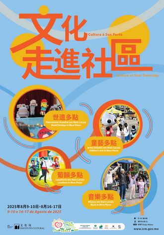 【本報消息】文化局續辦「文化走進社區」系列文化體驗活動,將於8月9日、10日、16日及17日一連兩個周末,在全澳15個社區點舉行18場文化快閃活動。是次活動與大眾慶祝澳門歷史城區申遺成功20周年,並融入全國運動會元素,設有世遺、葡韻、音樂及兒童藝術四大主題,將豐富的文化資源下沉社區,讓居民在生活日常中感受文化滋養,共築幸福生活圈。