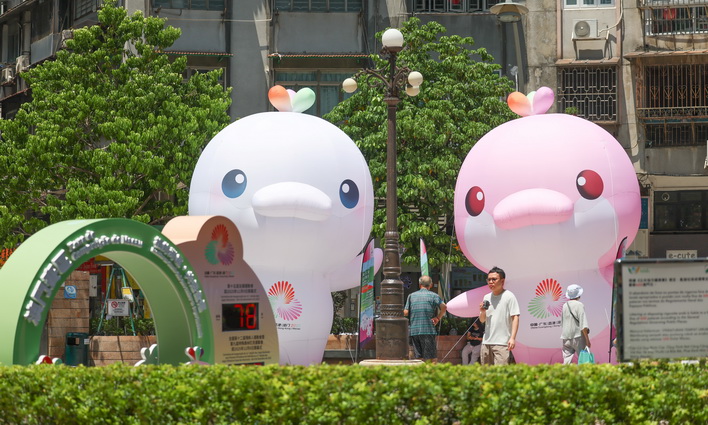 活動現場亦設有全運會拍照打卡道具,讓市民留下與全運精彩同行的美好回憶,超萌吉祥物「喜洋洋」和「樂融融」亦登場與市民可愛互動,一對五米高吉祥物充氣造型現身鬧市,吸引粉絲和市民爭相合影,現場氣氛喜氣洋洋、樂也融融。