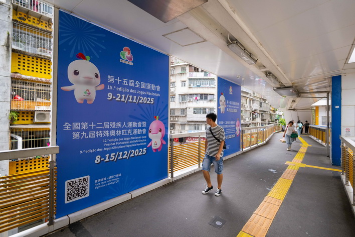 此外,澳門多條行人天橋及主要道路的燈柱旗幟已換上15運會和殘特奧會主題橫額,多輛巴士亦換上吉祥物彩繪設計,成為城市流動宣傳平台,讓市民和旅客感受到運動會的活力與盛事氣氛。