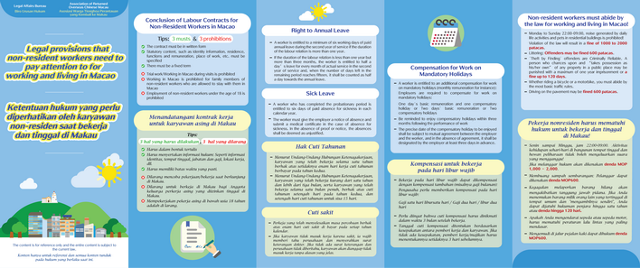 法務局已製作中文、葡文、英文以及印尼語四種語言的宣傳單張,並已同步上載至法務局官方網頁(www.dsaj.gov.mo/DsajInfo/imgpack_tc.aspx?mrecid=24307),歡迎市民瀏覽。