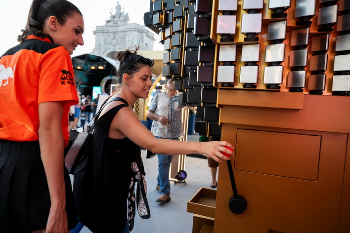 展位中央設置科技感十足的「機械矩陣動態獅子扭蛋裝置」,吸引大量觀眾駐足參與互動遊戲。參加者有機會贏取超過3,000份驚喜禮遇,包括《澳門2049》門票及折扣、「保利美高梅博物館」紀念品等。除美高梅的旅遊產品外,觀眾亦有機會獲得多個澳門文創品牌的特色禮盒,助力「澳門製造、澳門品牌、澳門設計」走向國際。