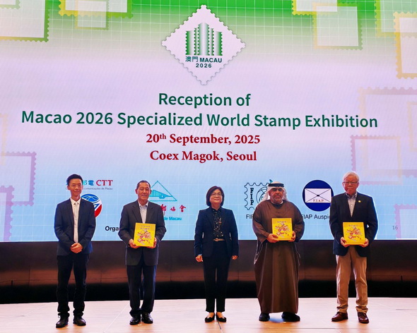 【本報消息】為了進一步宣傳推廣2026年在澳門舉辦的「澳門2026專項世界集郵展覽」,郵電局派員參加於9月17日至21日在韓國首爾舉行的「韓國2025世界郵票展覽」,並藉參展之機在當地舉辦「澳門2026專項世界集郵展覽」宣傳招待會。