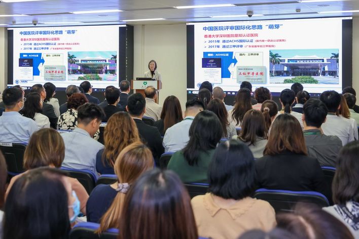 李詠梅詳細介紹《國際醫院評審認證標準(中國)》的背景與意義,深入講解評審認證流程,並與與會者展開積極的互動交流,其專業分享為本澳醫療機構通過國際醫院評審認證打下堅實基礎。與會者認為李詠梅主任的介紹有助他們更深入理解評審認證和流程,並逐步將標準要求落實到日常臨床與管理中。