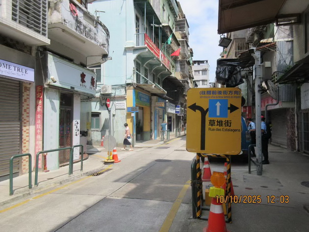 【本報消息】營地大街預留管線試點項目工程日前正式展開,考慮到工程涉及區內交通循環調整,工程實施初期,交通事務局聯同施工單位進行現場駐點視察,因應實際情況及社會意見,及時調整各項臨時措施的安排,包括於具條件位置擴闊行人通道、理順臨時指示牌安排、延長巴士站駐點人員時間等。