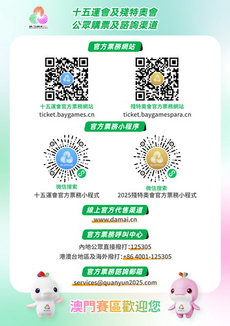 公眾應提前細閱持票須知並循官方合法渠道購票,切勿炒賣門票及向身份來歷不明人士購買門票,以免墮入騙局而招致財產損失。如在購票過程中遇到疑問,可撥打官方票務熱線(內地直接撥打:125305,港澳台地區及海外撥打:+86 4001-125305)或發送郵件至官方票務服務郵箱(services@quanyun2025.com)查詢。