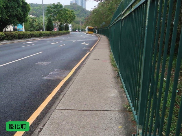 經優化後,史伯泰海軍將軍馬路近「史伯泰/麗景灣」巴士站的一段行人路由原本約1.4米擴闊至平均2.5米,同時優化了「史伯泰/盧廉若」及「史伯泰/麗景灣」巴士站的候車設施,包括進一步延長巴士候車亭遮陽上蓋空間,以及增設候車座椅及防撞柱,提升候車安全及舒適度。