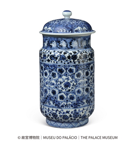 本次展覽薈萃中葡兩國文博機構的珍藏,並以「海通鏡鑒」為題,寓意海上絲綢之路不僅在物質文化史上留下豐富遺產,更透過澳門這扇「文化之窗」映照出文明互鑒的璀璨光芒。其中,明永樂青花錦紋蓋罐(故宮博物院藏)與明代青花鳳形軍持(葡萄牙國家古代藝術博物館藏),融合中外文化特色,尤為難得。