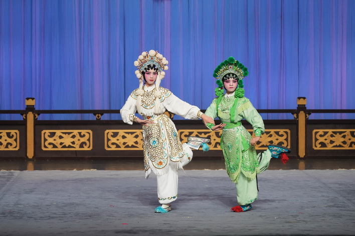 【本報消息】文化局澳門演藝學院兒童及青少年粵劇課程跙名學生於上月赴上海,參加第五屆「梨花杯」全國青少年戲曲教育教學成果展演,於周信芳戲劇空間演出粵劇《水漫金山》及《白龍關》片段,學生顧思敏、陸茵、劉承禮、梁樂軒的精彩演出,生動展現澳門粵劇傳承教育的新風貌,獲得現場熱烈迴響。