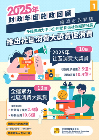 為提振消費市場信心,特區政府先後推出「2025年社區消費大獎賞」及「全運聚力.社區消費大獎賞」。其中全運社區消費大獎賞活動有超過兩萬間不同行業的中小商戶參與,截至11月2日有2.6億元電子優惠已被核銷,聯動全澳商戶消費約10.6億元。