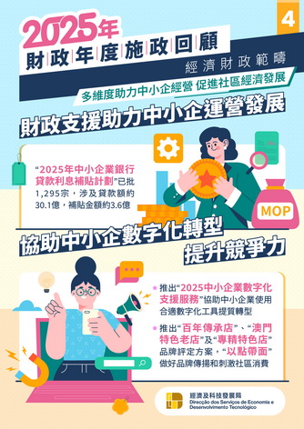 【本報消息】為落實2025年施政報告中關於持續優化營商環境,促進社區經濟發展的目標,特區政府採取多方面措施,助力本澳企業提升管理效率和競爭力,並引入不同元素增添社區吸引力,加強宣傳推廣,為社區拓流引客帶動消費。同時提供不同的財政支援措施,支持中小企業持續經營及創新發展。