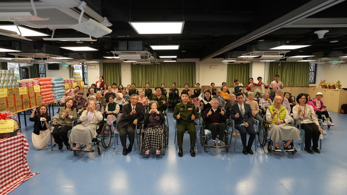 【本報消息】為感謝長者對本澳社會的貢獻,弘揚敬老崇孝的社會價值,駐澳部隊政治工作部副主任劉陳長與官兵代表,在社會工作局局長韓衛的陪同下,於日前到訪澳門明愛屬下的悅暉護養院探訪及關懷長者。