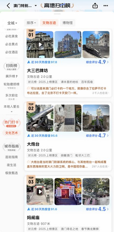 平台還推出澳門「掃街榜」,反映不同領域的商家受歡迎程度,助力旅客解鎖多樣深度體驗,帶動區內人流,增添社區經濟活力。