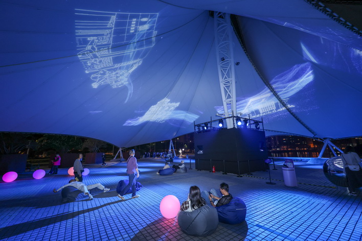 韓國光影藝術家全榮一在南灣湖湖面帶來《光的終點:黑洞》燈光裝置,由承載東方歷史的傳統韓紙與展現當代人類科技的燈光構成的「黑洞」。由澳門本地藝術家陸曦主理的《十二星座圖譜》燈光裝置,將南灣白帳篷穹頂變成一片投影畫布,通過互動裝置選擇心願祝福語,化作一道道星光升起躍上天幕,與無數星辰一同閃爍。
