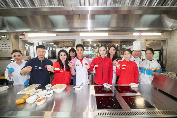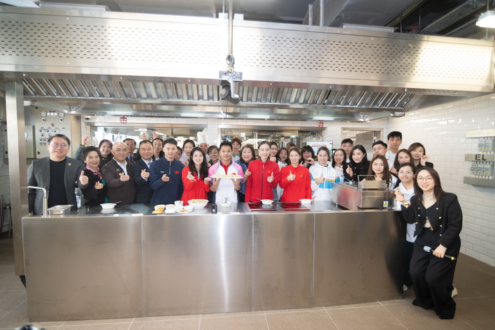 其後,多位國家金牌運動員,包括陳若琳、陳芋汐、吳敏霞、何冲及陳艾森親臨校園,與學生近距離互動。運動員們暢談訓練點滴與賽場故事,學生亦踴躍提問,現場氣氛熱烈。活動尾聲,一眾嘉賓在師生陪同下參觀了旅大氹仔校區耀東樓的教學設施,了解大學在旅遊教育方面的創新實踐。運動員更與學生們共同參與富有文化特色的體驗環節,一起動手製作澳門土生葡菜馬介休球,並品嚐新鮮出爐的葡撻。