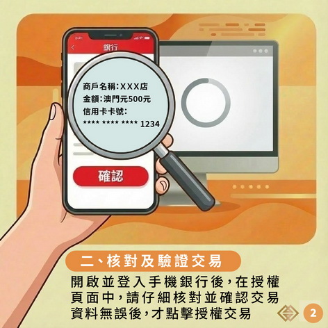 【本報消息】近年本澳電話詐騙案、網絡詐騙案及電腦詐騙案持續高發,為進一步提升銀行卡網上交易的安全性及持卡人的權益保障,澳門金融管理局已要求本澳發卡銀行於本月下旬起,在其手機銀行內新增銀行卡網上交易授權功能,代替一次性短訊驗證碼以授權有關交易。未開通手機銀行服務的持卡人,則可沿用一次性短訊驗證碼授權交易。