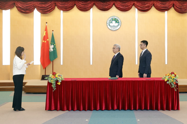 【本報消息】行政法務司司長黃少澤17日早上在政府總部多功能廳,主持身份證明局局長陳海帆和法律及司法培訓中心主任羅翩卿的就職儀式,司長充分肯定兩人具備豐富管理經驗與優秀領導才能,展現大局意識和執行能力,堅信兩人能帶領團隊開拓創新,全力推進公共行政改革,實現第六屆特區政府「提升特區治理效能」的施政目標。