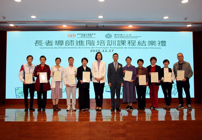 【本報消息】由社會工作局與澳門理工大學長者書院合辦的「長者導師進階培訓課程」於日前舉行結業禮,一眾長者學員完成課程並獲發結業證書。