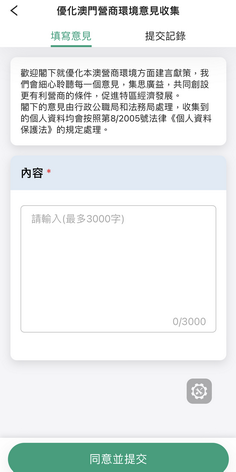 【本報消息】為充分聽取民意,凝聚社會共識,一戶通推出公眾意見收集功能,就「優化澳門營商環境」和「橫琴合作區發展」廣泛收集社會意見。