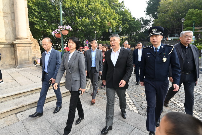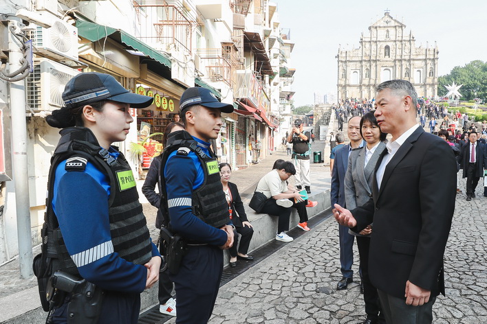 【本報消息】隨著訪澳旅客突破歷史新高,加上多項除夕大型倒數活動即將舉辦,警方預計將吸引大量市民和旅客參與慶祝。為確保各項活動安全有序進行,警察總局局長梁文昌近日率治安警察局代局長伍素萍、警察總局局長助理梁文照、局長助理魏瑞斌、治安警察局副局長梁慶康、代副局長鄭俊禧等領導主管,先後實地視察大三巴、旅遊塔、官也街、金光大道等主要活動場地及人流密集區域,檢視節日安保工作的落實情況。