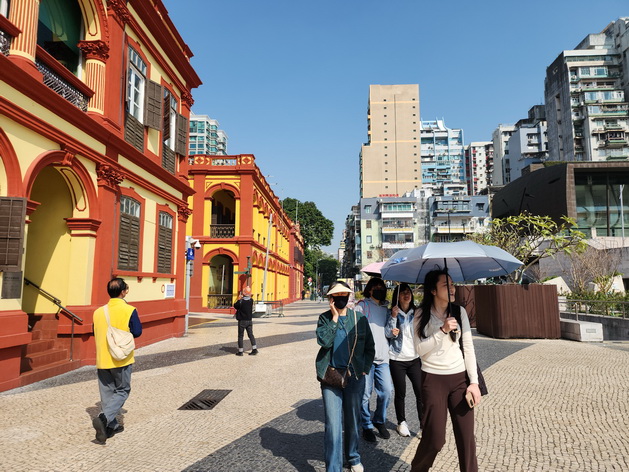 臨近新一年本澳的冬天終於多了點「寒意」,踏入2026年本澳日間終於變得較為清涼,且間中比較寒冷,如上周六本澳就錄得入冬以來9.8度最低溫,但隨著冬季季風稍為緩和,近兩日氣溫略有回升,周一本澳各區全日最高氣溫一度升至約20度或以上,尤其正午時份被太陽光直射時感覺相當和暖,紫外線亦較高,不少行人走在太陽底下時要用手或物件遮擋陽光,更有行人索性打開雨傘遮陽。