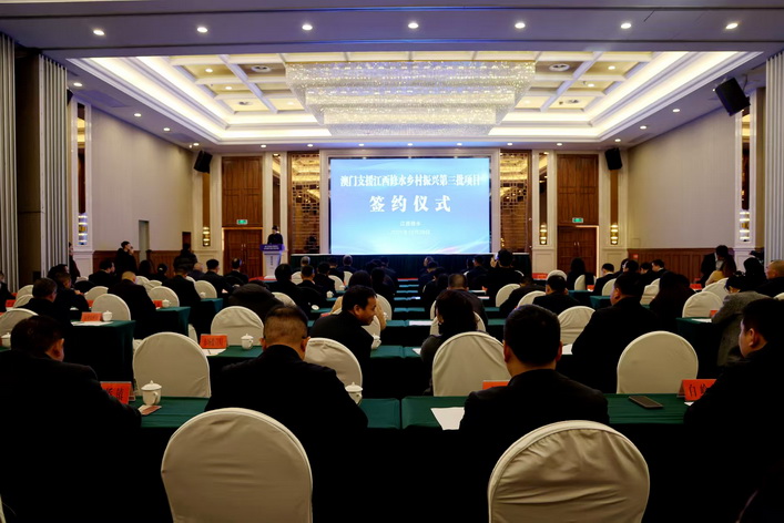 【本報消息】澳門支援江西修水鄉村振興第三批項目簽約日前儀式舉行。政府政策研究和區域發展局局長張作文,中聯辦經濟金融部副部長楊全州,江西省蘇區辦副主任傅小鵬,江西省港澳辦副主任陳俊,九江市政府副市長杜少華,修水縣委書記鄭慶華,修水縣委副書記、縣長劉婕出席,出席簽約儀式的還有本澳政研局、中聯辦經濟金融部、文化局、蔬菜批發商商會、直播協會、江西同鄉會、記者聯會、澳門部分優秀企業和省發改委、省港澳辦等單位有關領導和嘉賓。