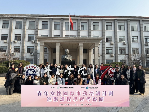 【本報消息】由婦聯青年協會主辦、澳門基金會贊助的「青年女性國際事務培訓計劃進階課程學習考察團」日前赴京考察。34名完成基礎培訓的本澳青年女學員經四天專題授課、外交觀摩及實地參訪,系統提升國際事務與跨文化傳播能力,深化愛國愛澳情懷,為融入國家發展大局、講好中國與澳門故事積備力量。