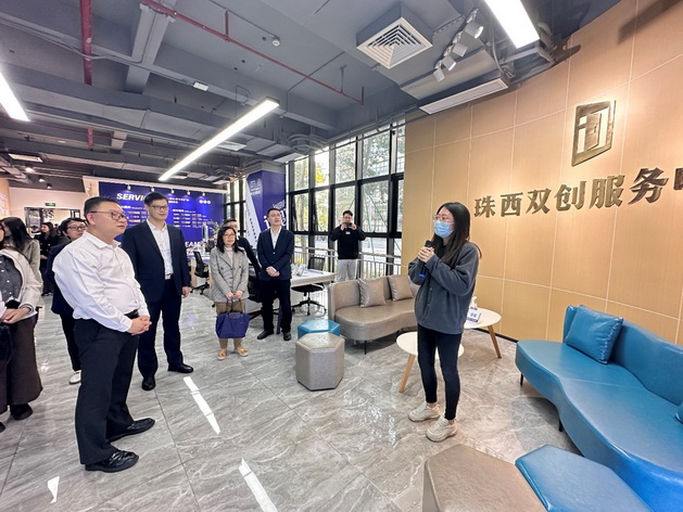 為親身了解合作項目實踐情況,澳門代表團一行赴江門及中山進行調研。在江門,代表團參觀了當地行政服務中心,實地了解「粵澳社保一窗通」專窗為澳門居民辦理社保服務的便捷流程。此外,亦考察了與特色產業、創新創業相關的項目,親身感受大灣區融合發展活力。在中山,代表團到訪技師學院,參觀糖藝/西點製作項目的國家集訓基地,了解相關技能人才培養工作。