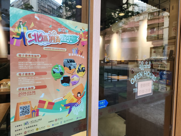 【本報消息】為提振北區消費,改善北區營商環境,北區工商聯會主辦的「第17屆北區消費嘉年華2026」周一開始,為期六周至2月20日結束,市民使用澳門中銀手機支付工具在裝有澳門中銀POS機的商戶消費滿100澳門元,即可獲三次抽取「電子優惠券」及一次抽取「終極大抽獎」的機會。主辦單位指北區約有1,000家商戶,目前已有470家商戶報名參與。有小食店料活動有助提升市民在區內消費的意欲,有助商戶增加生意額。