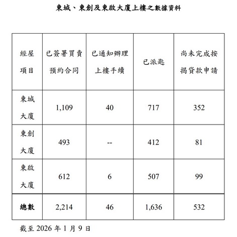 根據房屋局網站的統計資料,截至今年1月9日三個經屋項目合共3,017個單位中,已簽署買賣預約合同即已出售單位有2,214個,當中已派匙的有1,636個單位,另有532個單位未完成按揭貸款申請。