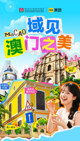 旅遊局與美團繼2024年合作推出「澳門心喜遇」推廣項目後,續於2025年第二至第四季合作打造「域見澳門之美」系列活動。是次系列活動強化以「澳門文化」為主題旅遊特色,圍繞不同社區特色旅遊元素,分階段推出「域見澳門之美」、「心動澳門 在這一拍」、「尋找澳門街頭美食家」及「盛世璀璨 幻彩澳門」四個系列主題營銷活動,同時,在美團及大眾點評手機應用程式中特設澳門主題線上推廣專頁、社區遊覽路線攻略和周邊商戶優惠等,豐富旅客遊澳體驗,持續推廣澳門社區旅遊,助力社區經濟發展。
