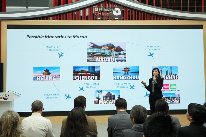 澳門旅遊推介會率先於1月22日在澳門展館舉行。程衛東、馬德里中國文化中心副主任許婷婷、葡萄牙旅行社協會(APAVT)主席佩德羅.科斯塔.費雷拉、西班牙旅行社協會(CEAV)主席卡洛斯.加里多及歐洲旅行社和旅遊運營商協會(ECTAA)秘書長埃里克.德雷辛等出席。會上,旅遊局介紹了澳門旅遊優勢、最新發展及旅遊激勵計劃等,中國國際航空、澳門航空、東方國際旅遊有限公司、旅業匯技術服務有限公司、美高梅及澳門活動專家有限公司等業界代表亦分享相關產品及服務。