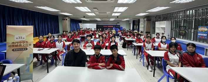 【本報消息】由澳門基金會與澳門日報合辦的第31屆「澳門中學生讀後感徵文比賽」之延伸活動「閱讀寫作講座」已於今年一月圓滿舉辦,本屆共組織了15位本澳作家走訪24間中學,與學生們分享閱讀心得及寫作技巧,藉此引發學生對文字的興趣,參與學生逾1,900名。講座自第20屆起舉辦至今反應熱烈,深受師生歡迎。為持續推廣校園的閱讀寫作風氣,主辦單位將於每一學年初推出有關講座,歡迎各校踴躍參與。