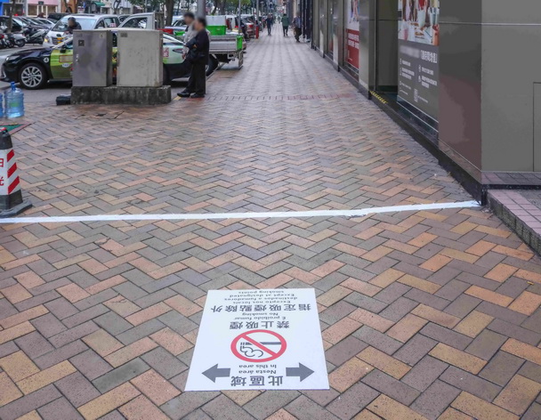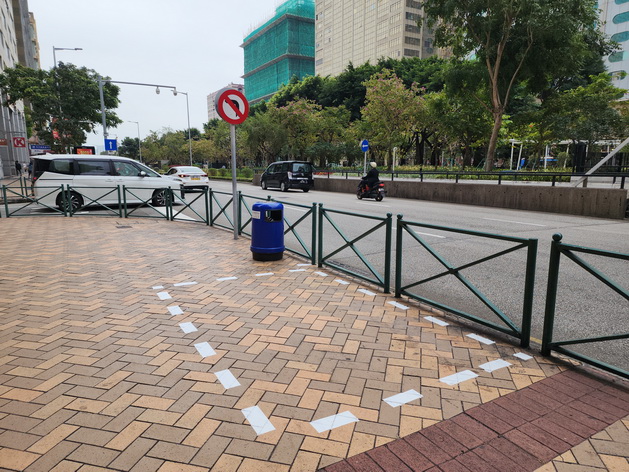 市政署上周五起已在該區域開展禁煙區域和指定吸煙點繪製地面界線及標記工作,周一現場所見,宋玉生廣場靠近商業大廈的行人路上已劃設白色標線,其中有數個地點已張貼中、英、葡三語禁煙的標記,其餘則見地面有混礙土鋪設的方格,預料稍後將用作張貼禁煙標記。與此同時,四個指定吸煙地點的亦已劃有白色虛線方格,大部份位原有垃圾桶旁。