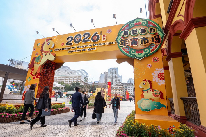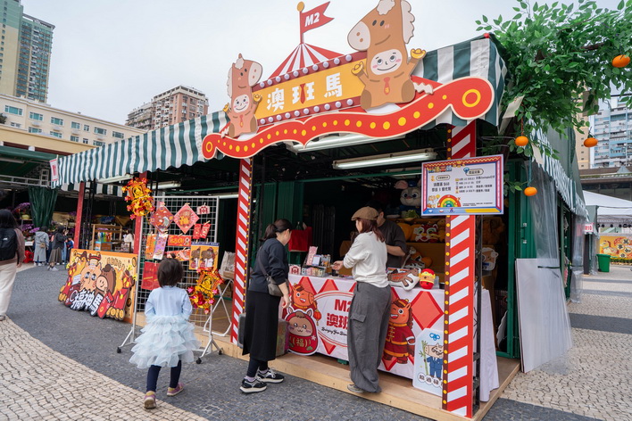 【本報消息】一年一度於塔石廣場舉行的農曆新春年宵市場已於2月10日開幕,現場除安排了流動表演及舞台表演外,今年亦特別設有攤位遊戲及一連串活動,加上喜慶的新年節日佈置,為春節年宵市場增添濃厚的熱鬧氣氛,與全澳市民及旅客共迎丙午馬年。