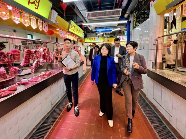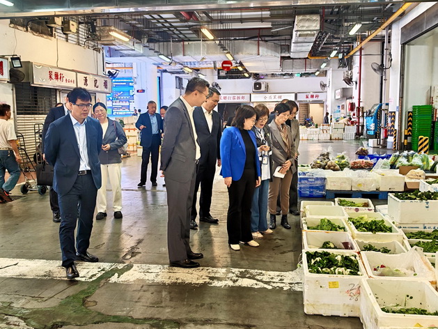 【本報消息】國家商務部對外貿易司副司長李娜11日率團來澳,開展農副產品保供考察工作。市政署市政管理委員會主席周偉迎及委員吳秀虹陪同實地考察澳門新批發市場及氹仔街市,了解內地農副産品供應情況,並表示確保春節期間澳門農副產品安全穩定供應。考察團成員包括國家商務部、海關總署和廣東省商務廳的代表。