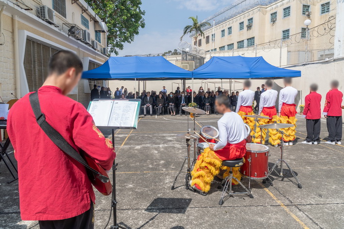 之後,院生們進行了醒獅表演及獻唱《陀飛輪》和《海闊天空》兩首歌曲,表達對嘉賓和家人的謝意。儀式結束後,少年感化院為院生及其家人舉辦新春聯歡聚餐,過程中,院生向家人送上親手製作的禮品,場面感人。懲教管理局對澳門明愛為是次新春聯歡活動提供贊助,以及長期支持社會重返工作表示感謝。