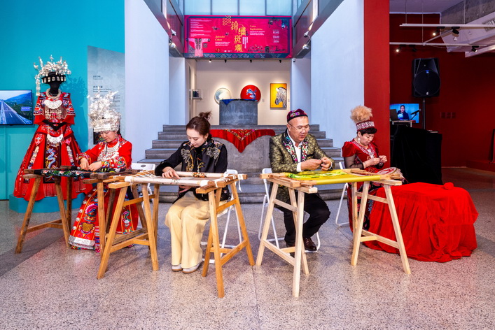 展出的刺繡作品不僅技藝精湛、風格多樣,飽含民族文化底蘊,其用料、圖案與色彩更承載著當地族群世代相傳的審美意趣和創造力,表達人民對美好生活的嚮往與追求。展場設有非遺傳承人現場展示刺繡技藝,傳承人與觀眾親切互動,營造良好參觀氛圍。