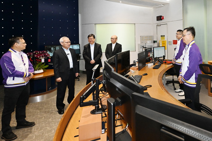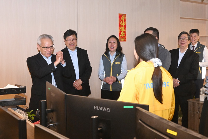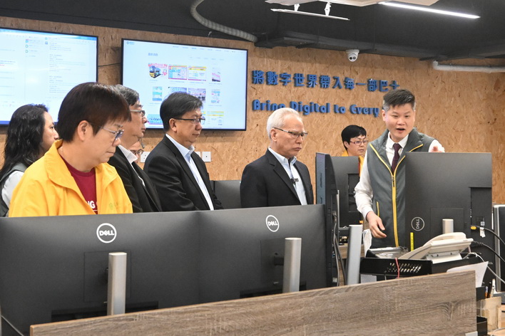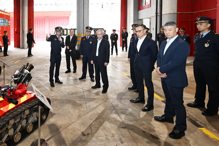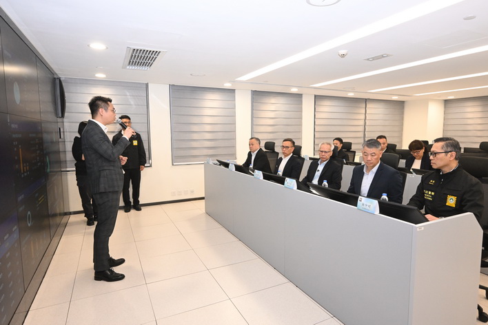 岑浩輝之後再走訪消防局黑沙環行動站,以及司法警察局大樓的網絡安全事故預警及應急中心、反詐騙協調中心。在保安司司長陳子勁、警察總局局長梁文昌、海關關長何浩瀚等陪同下,岑浩輝先後聽取了消防局局長王健和司警局局長薛仲明介紹兩局在節假日期間的工作部署,並了解各項警務和消防設施的運作情況。